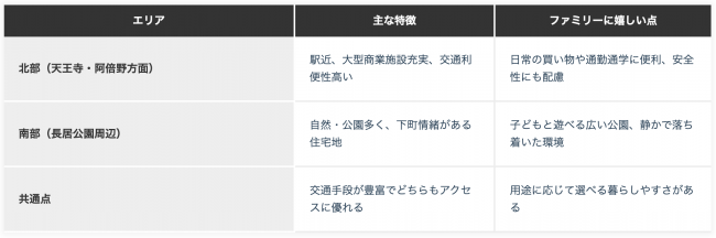 まとめ東住吉区は、ファミリー世帯が安心して暮らせる環境がしっかりと整っています。交通アクセスや日常の買い物の便利さ、公園や教育・医療施設の充実、落ち着いた住宅街など、家族のさまざまなニーズに応える要素が多く揃っています。北部と南部ではそれぞれ異なる魅力があり、ご家族のライフスタイルや重視するポイントにあわせて最適なエリアを選ぶことができます。東住吉区で、ご家族の理想の暮らしをぜひ実現してください。