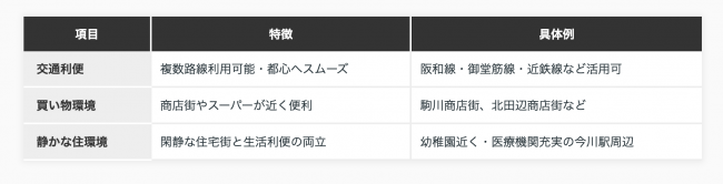 常に便利です。都心部への移動時間を抑えつつ、閑静な住宅街で落ち着いた暮らしが送れます。