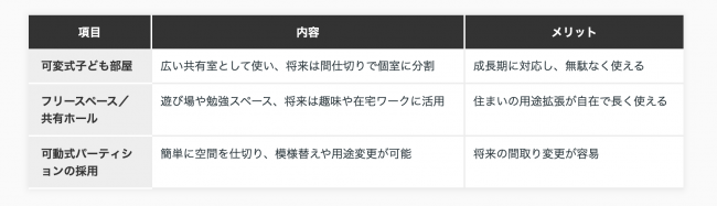 以下に、将来に備えた柔軟な間取り設計の主なポイントをまとめました。