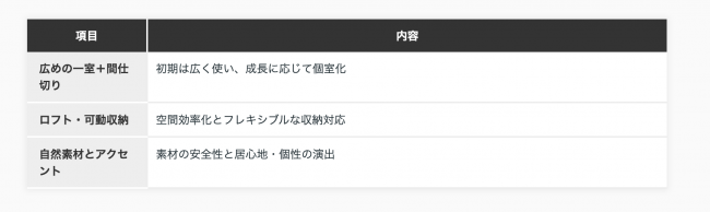 このような将来を見据えた柔軟な設計と、家全体との調和を考慮することで、子育て期だけでなく長く快適に暮らせる理想的な住まいが実現します。