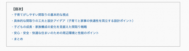 これらの基本的な視点を念頭におくことで、新築一戸建ての間取りは、子育てのしやすさと家族の快適さを両立できる空間として実現しやすくなります。