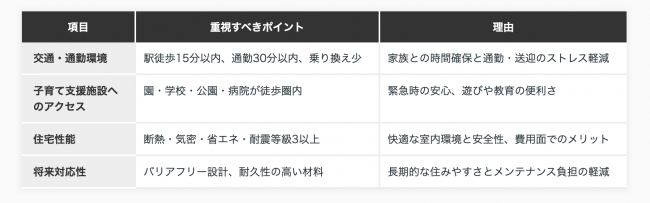 以下に、周辺環境と住宅性能のポイントを表にまとめました。