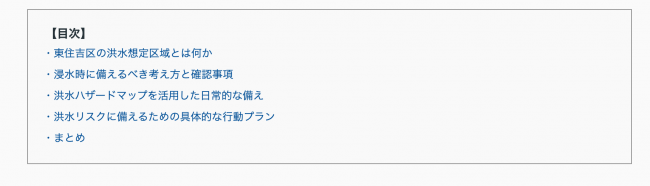 東住吉区にお住まいの方が洪水リスクに備える際には、以下の視点で日頃からの準備を進めることが重要です。