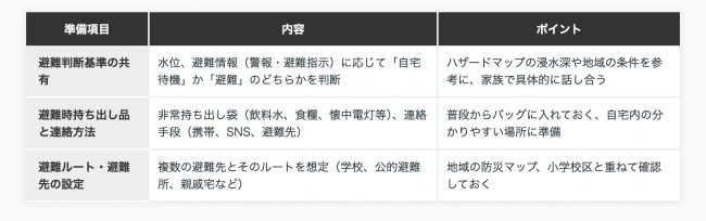 東住吉区にお住まいの子育て世帯にとって、災害時の判断基準や事前準備を家族で共有しておくことは、いざというときの安心につながります。以下に、家庭での準備を整理してご紹介します。