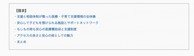 支援と相談体制が整った医療・子育て支援環境の全体像