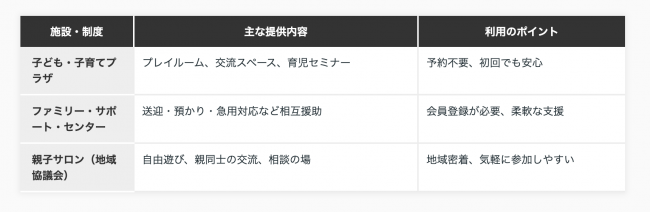 こうした施設や制度を活用することで、東住吉区では子育て世代が安心して子どもを預けられる環境が整備されています。日常のちょっとした困りごとから一時的なサポートまで、幅広く対応できる体制がある点が特徴です。