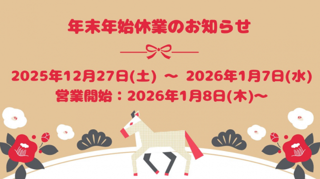 休業期間:2025年12月27日(土) 〜 2026年1月7日(水)
